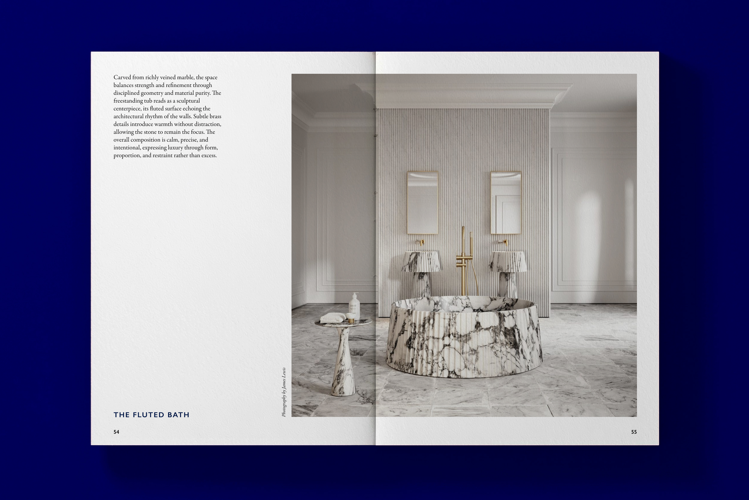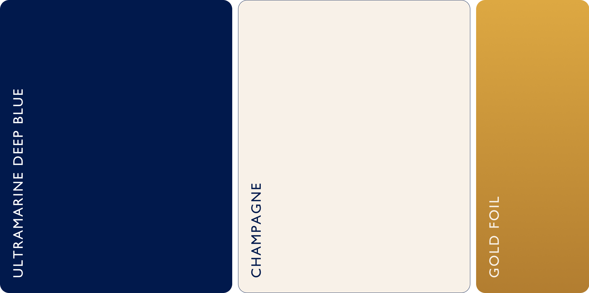 The color palette was designed to feel understated and luxurious. Ultramarine deep blue provides depth, contrast, and a contemporary presence, while the champagne tone softens the system and recalls the natural surfaces Terra Cava works with. The identity uses fine gold foil lines applied selectively across materials. These lines introduce precision, craft, and a sense of value without visual noise, adding a subtle architectural detail that elevates the brand while keeping the focus on proportion, material, and finish.